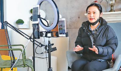 3月22日下午,江西省南昌市高新区智慧101大厦,企业人力资源主管化身“女主播”,在线招聘。 喻云亮摄(人民视觉)